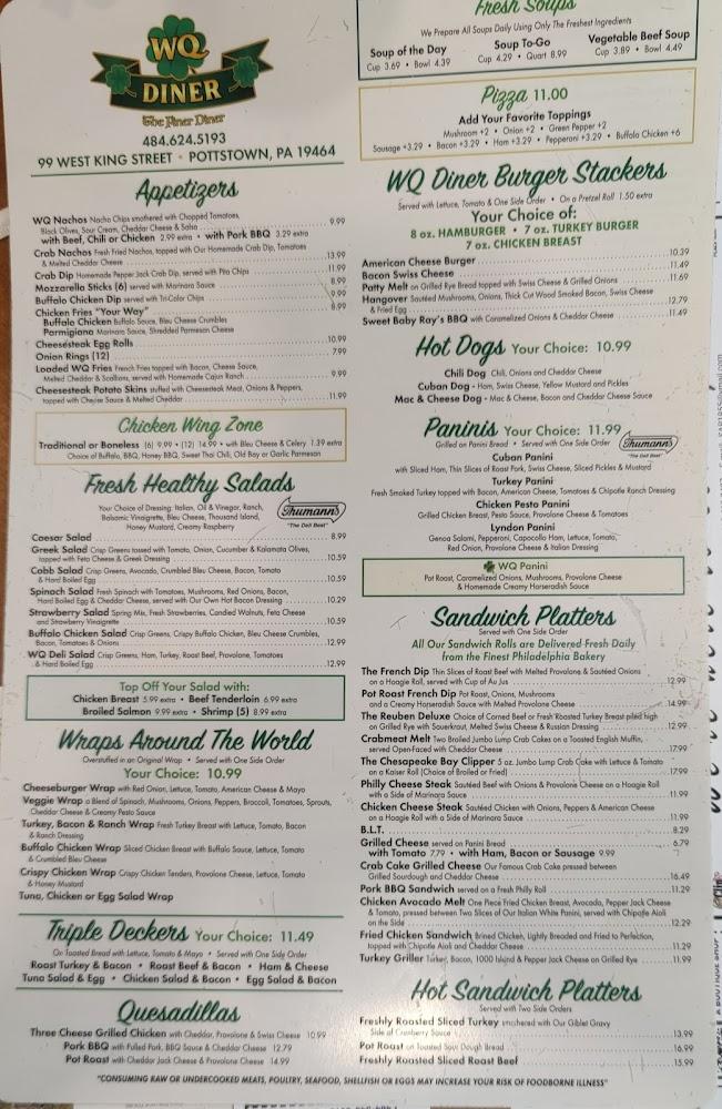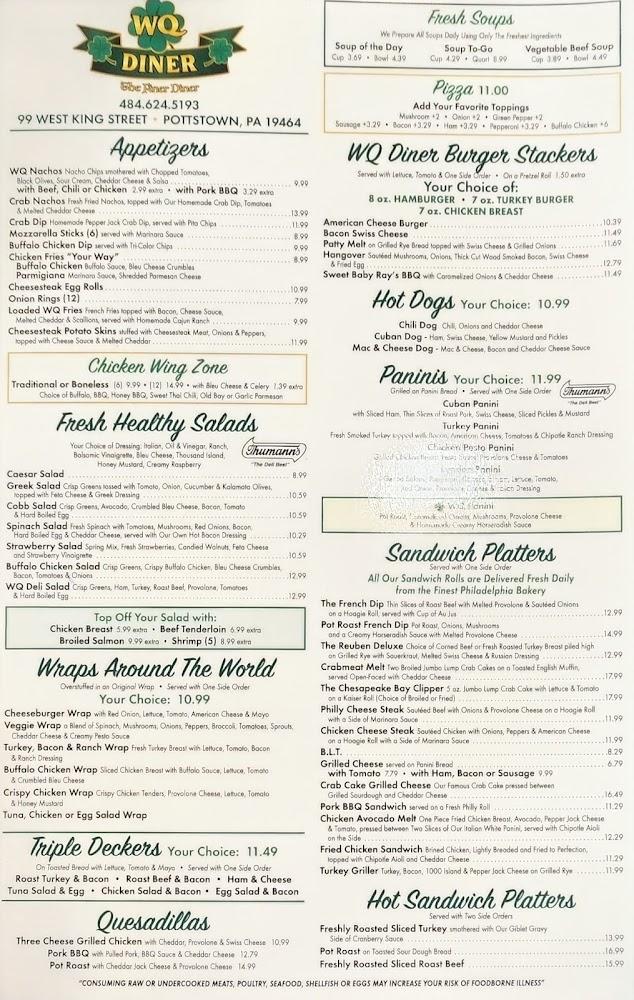 Welcome to WQ Diner, where our commitment to quality ensures your complete satisfaction. Located at 99 W King St, Pottstown, PA, we proudly serve up delicious food daily, with a menu that caters to everyone—from hearty breakfasts to satisfying dinners. Enjoy our excellent coffee and local specialties, either dining in or taking out. We offer accessible facilities and late-night dining options, ensuring a comfortable experience for all. Join us for a meal, and experience our strength, honesty, and pride in every bite. Your perfect dining destination awaits at WQ Diner!