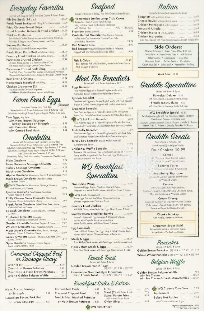 WQ Diner's menu offers an impressive variety of dishes designed to please every palate. Breakfast lovers can enjoy classics like golden brown pancakes, fluffy waffles, and comforting eggs benedict. The lunch menu features hearty sandwiches, fresh salads, and wraps. Dinner highlights include pot roast and fried chicken, delivering classic diner fare loved by locals. Specialties also abound, such as crabmeat melts and homemade soups. Vegetarian options round out the selection, ensuring everyone finds a pleasing meal. Each dish is crafted with care, using fresh ingredients that prioritize quality.